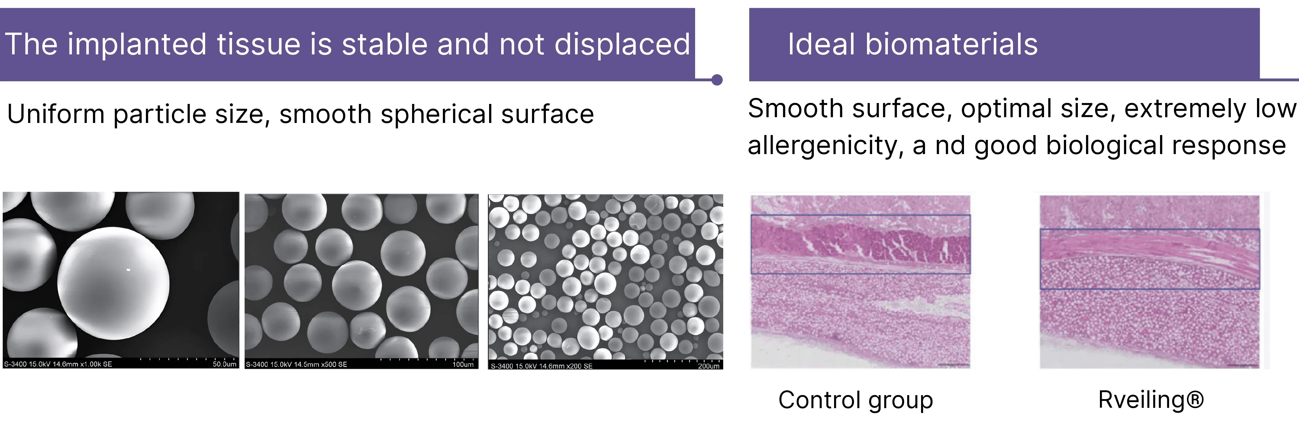 Rveiling® PLLA-PEG 冻干粉的创新之处,在于以高度纯化的透明质酸钠构建了全新的微球颗粒载体系统。这一设计从三大核心维度提升了产品性能:通过优化悬浮稳定性保障微球颗粒均匀分布,借助预灌封工艺实现剂量精准控制,并利用载体卓越的生物相容性主动预防炎症,为实现更安全、更可控的临床疗效奠定了坚实基础。