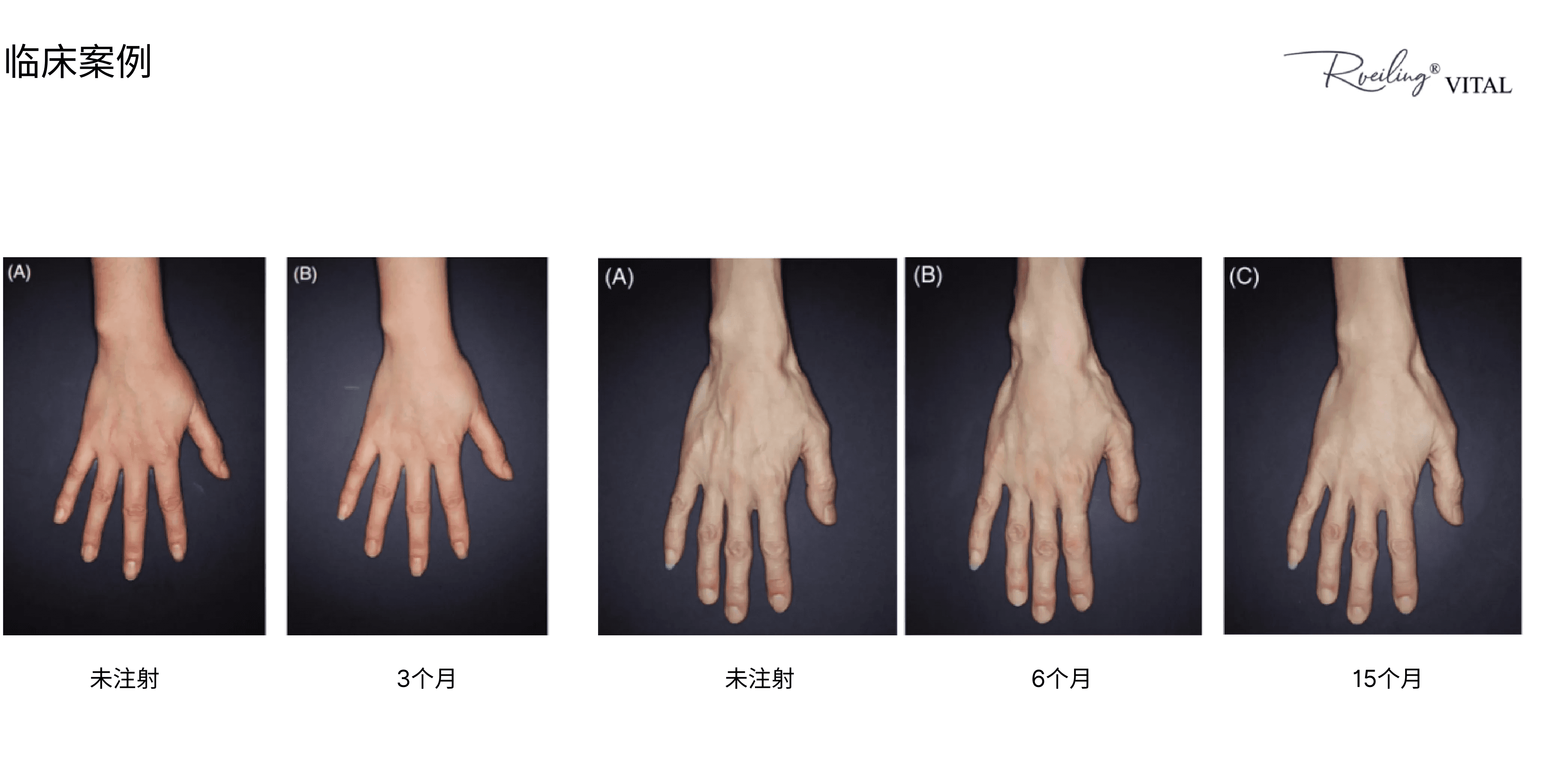 Rveiling® Vital注射、不同年龄手背软组织前后对比、不同时段的观察对比效果
