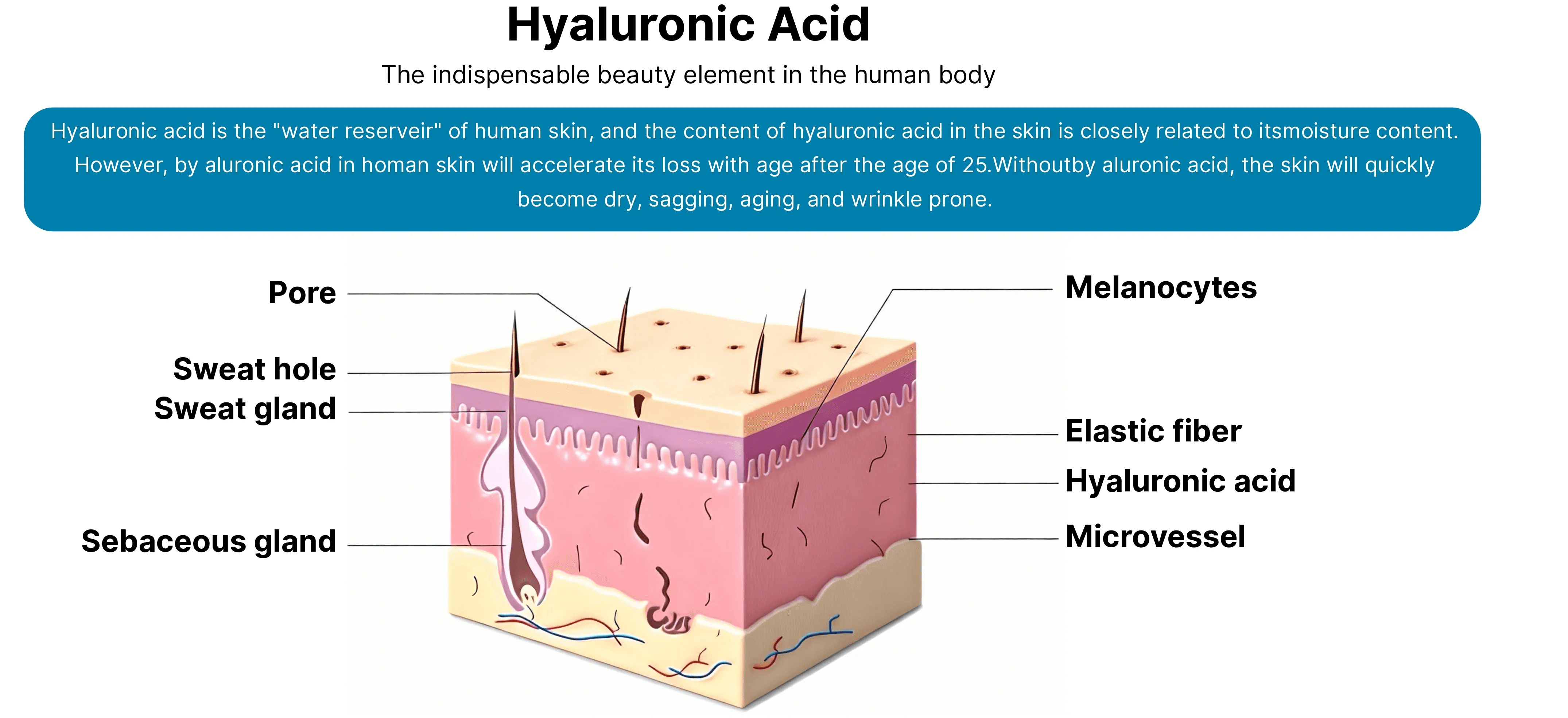透明质酸分子在真皮层形成长效储水网络。