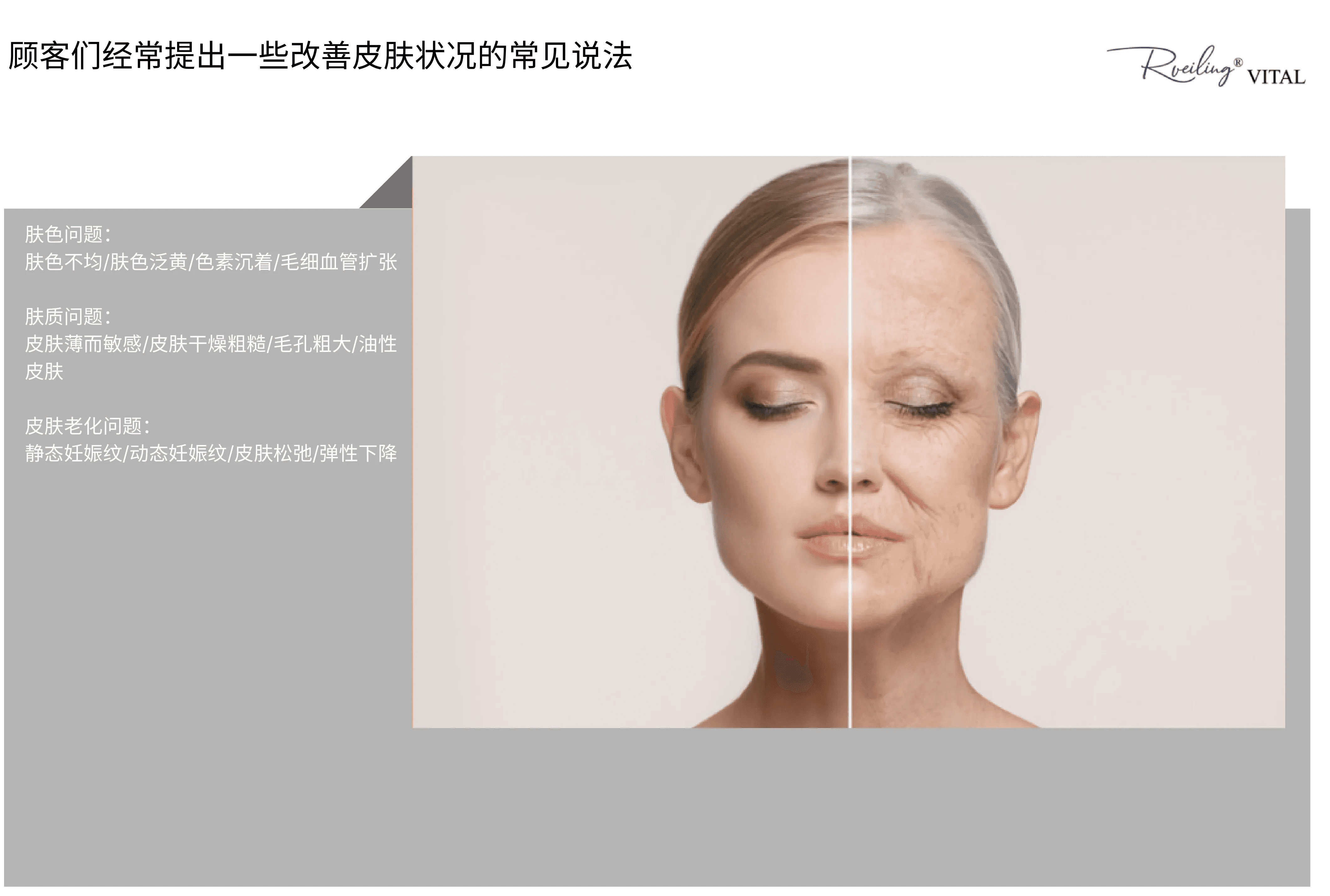 Rveiling® Vital为微小颗粒微交联结构、质地细腻,适合真皮浅层注射,通过注射填充于真皮组织来修饰、改善肤质及细纹以达到满意的效果。